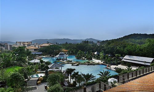 中山溫泉度假村由嶺南派建築大師莫伯治先生設計,並邀請了新加坡頂尖設計師進行規劃,與嶺南風格高度融合,融中國神韻和異域風情於一體。景區所擁有的天然溫泉,是「中國十大溫泉」之一,泉眼溫度高達93度,浸浴可調節身體機能,促進血液循環和新陳代謝,適於理療和保健。