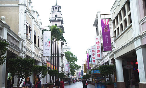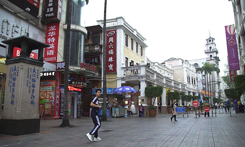 步行街揉合傳統和現代於一身,散發著一股迷人的文化氣息,給遊人提供一個風格獨特的旅遊景像。步行街入口有一座栩栩如生的人力車、車夫、乘客的雕像歡迎遊人,而街道兩側建築都保留歷史留下的南洋騎樓,具有文化欣賞價值及歷史韻味,恍如置身於半個多世紀前的老街。騎樓是步行街的一大特色,能夠遮擋烈日及暴雨,而騎樓上的圍欄則保留往日的雕花。街道店鋪林立,現有140多家商店讓遊人買特色手信,繁榮興旺,還保留有一間於清同治元年(1862年) 的老字號藥材店──福壽堂,還有建於1929年的舊永安公司分分司。如此具特色的街道,萬物錯過!